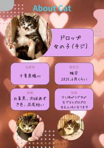 2023.8月に多摩市貝取で子供たち3頭と共に保護されました。